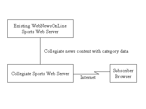 This product will leverage WebNewsOnLine's existing lead in collegiate sports news, but will present a user interface via a separate system. Graphically, the system may be viewed as follows: