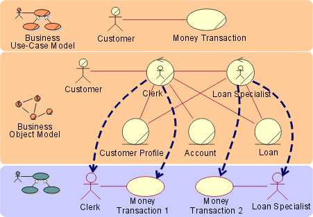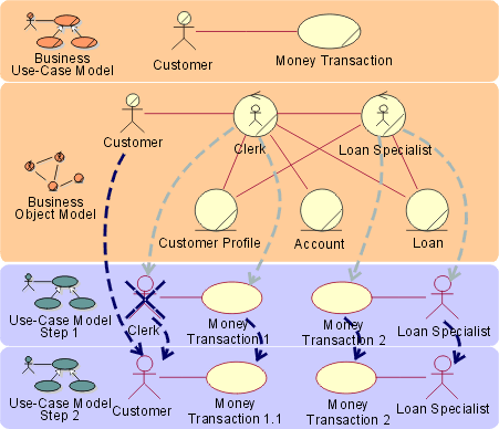 way the business process is realized, as well as how you find system actors and use