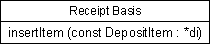 In the Recycling Machine System, the objects of a Receipt Basis class keep track of how many deposit items of a certain type a customer has handed in. The behavior of a Receipt Basis object includes incrementing the number of objects returned. The operation insertItem, which receives a reference to the item handed in, fills this purpose.