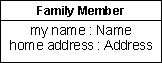An example of how an attribute is modeled. Each member of a family has a name and an address. Here, we have identified the attributes my name and home address of type Name and Address, respectively: