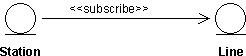 system, we have two entity objects, Station and Line, where Station has a subscribe-association