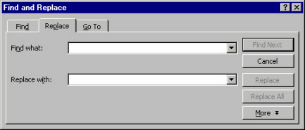 A dialog box in Microsoft® Word, providing a find operation among paragraphs and characters.