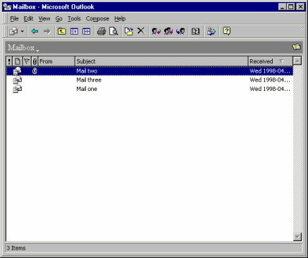A primary window in Microsoft® Outlook, showing a mail box. It contains objects like mail messages.