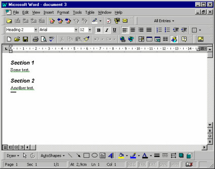 A primary window in Microsoft® Word, showing a document. It contains objects like paragraphs and characters. (Although the examples illustrated here are from the Microsoft® platform, these guidelines are by no means intended to be specific to that particular platform.)