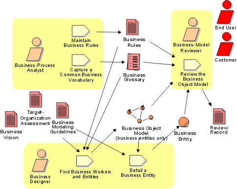 You can choose to develop an "incomplete" business object model, focusing on explaining products, deliverables, or events that are important to the business domain. Such a model does not include the responsibilities people carry, and is often referred to as a domain model.