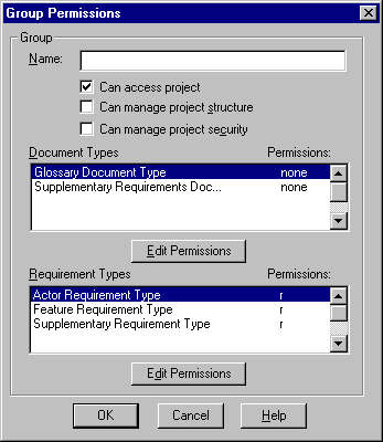 the Project Security dialog box). The Group Permissions dialog box appears.