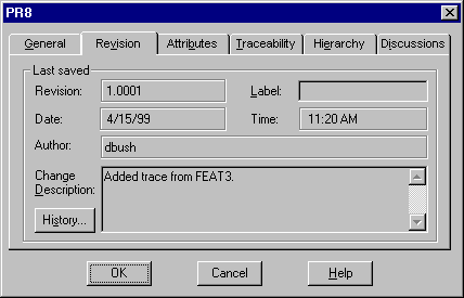 members record their reasons for changing requirements. RequisitePro provides a Change