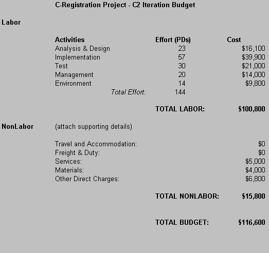 The following table illustrates the high level activities for C2 with their planned start and end dates.
