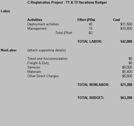 The following table illustrates the high level activities for T1 and T2 iterations with their planned start and end dates.