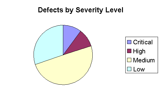 The Defects by Severity Level chart shows that 4 critical and 4 high