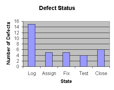 - Defect Status (logged, assigned, fixed, tested, closed).
