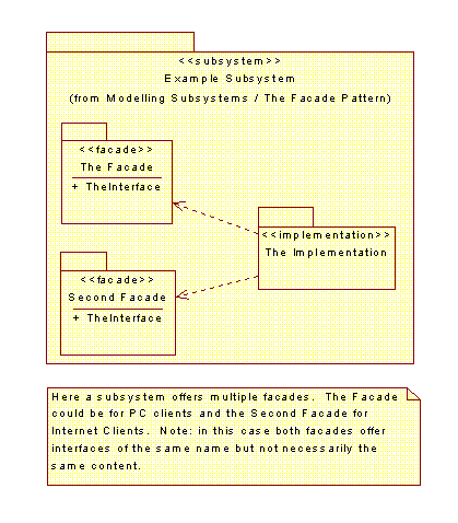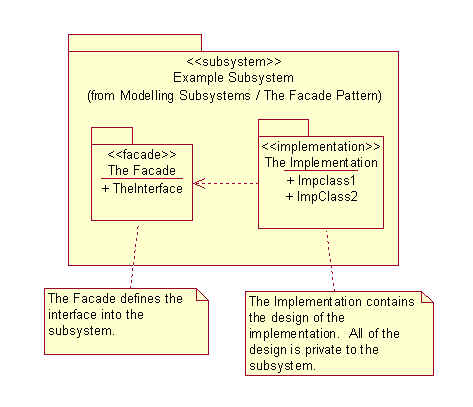 The facades thus encapsulate the internals of the subsystem in order to minimize